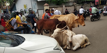 धुलिया : सड़कों पर आवारा पशुओं का डेरा लोग परेशान, यातायात भी प्रभावित