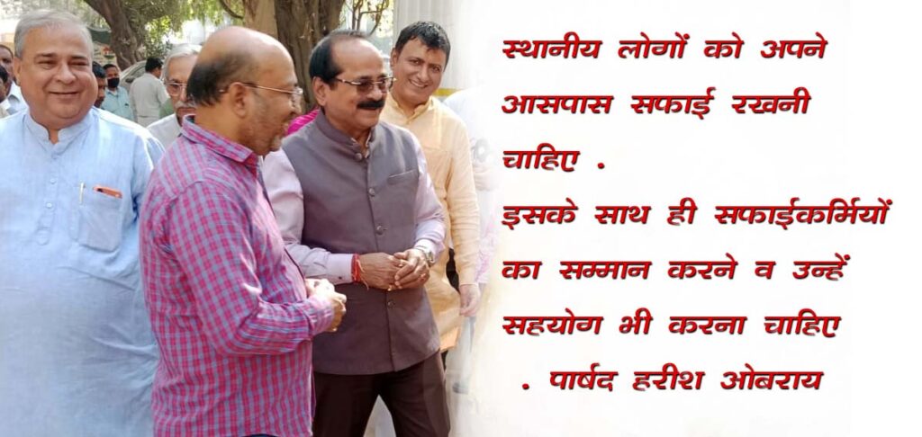 इस दौरान स्थानीय निगम पार्षद हरीश ओबरॉय ने पूरे समय उपस्थित रहकर न केवल स्वयं स्वच्छताअभियान में हिस्सा लिया बल्कि उपस्थित कार्यकर्ताओं का मार्गदर्शन करते हुए उत्साह वर्धन भी किया.