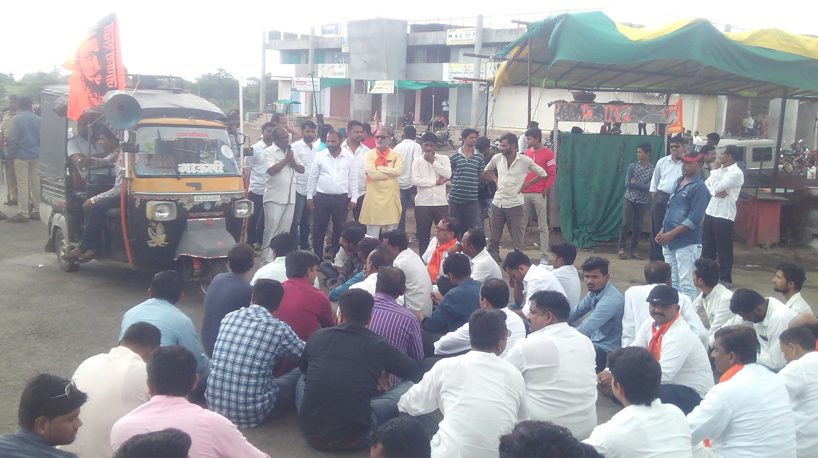 जामनेर (नरेंद्र इंगले):सुबे मे मराठा समुदाय के लिए आरक्षण को लेकर चलाए जा रहे चरणबद्ध आंदोलन के दौरान आज अगस्त क्रांति दिवस के उपलक्ष्य मे सकल मराठा समाज ने राज्यव्यापी बंद का आवाहन किया . इस का व्यापक असर तहसिल के नेरी , तोंडापुर , पहुर , पालधी जैसे बडे कसबो मे देखा गया . नेरी राजमार्ग पर सकल मराठा समाज के बैनर मे सभी राजनितीक दलो के पदाधिकारीयो ने लामबंद होकर शांतिपूर्ण तरीके से रास्तारोको किया जिसके कारण करीब 2 घंटे तक राजमार्ग का यातायात ठप रहा . मौके पर पूर्व जिला परीषद अध्यक्ष दीलिप खोडपे भाजपा के डा संजीव पाटील , डा प्रशांत भोंडे , राजु चौधरी , प्रा शरद पाटील , राजु पाटील , सोपान पाटील , राष्ट्रवादी के युवा नेता अभिशेक पाटील , किशोर खोडपे , भगवान पाटील , राजेंद्र चौधरी , प्रल्हाद बोरसे , डा बाजिराव पाटील , बाबुराव गवली , पप्पू पाटील , पांडूअप्पा पाटील , सुनिल पाटील , कांग्रेस के शरद टी पाटील , समाजसेवी डा नंदलाल पाटील , नरेंद्र जंजाल , रविंद्र सुर्यवंशी समेत सैकडो पदाधिकारीयो ने आंदोलन मे शिरकत कि . पखवाडा बाजार होने के कारण जामनेर शहर मे बंद को ढील गयी थी बावजूद राज्यव्यापी बंद के आवाहन से परीचित व्यावसायियो ने बाजार मे लगने वाली अपनी दुकाने बंद रखी थी .