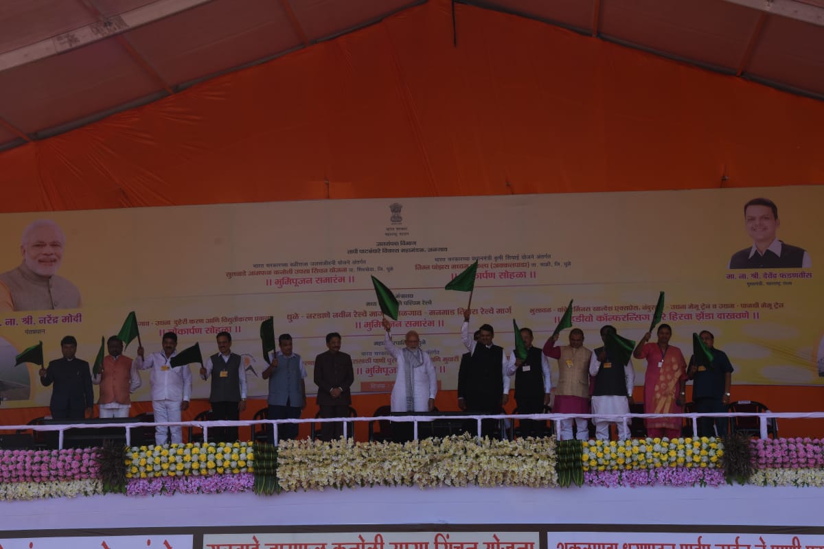 इस बीच वीडियो लिंक  के जरिए उन्होंने भुसावल नंदुरबार बांद्रा , नंदुरबार -उधना, उधना पालधी नई रेल गाड़ियों को हरी झंडी दिखाकर रवाना किया है .इस मौके पर रक्षा राज्य मंत्री डॉक्टर सुभाष भामरे ने जन समुदाय को संबोधित करते हुए प्रधानमंत्री का आभार प्रकट करते हुए  कहा कि मनमाड इंदौर परियोजना के प्रथम चरण धूलिया नरडाना परियोजना का भूमि पूजन कर खानदेश वासियों की 40 साल की तपस्या को प्रत्यक्ष रूप में साकार बीजीपी सरकार ने किया और सुलवाड़े जामफ़ल कानोली परियोजना के माध्यम से अकाल ग्रस्त क्षेत्र में इस परियोजना से सिंचाई का एक नया अध्याय शुरू होंगा इस  परियोजना के माध्यम से केंद्र सरकार ने निधि उपलब्ध कराकर सिंचाई परियोजना की सौगात दी है. जिस से 100 गावों की एक लाख एकड़ भूमि रकबा जमीन सिंचित होगा.
